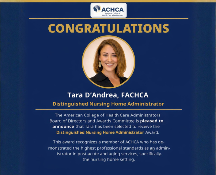 Tara D’Andrea recognized by ACHCA as Distinguished Nursing Home Administrator for excellence in post-acute care leadership